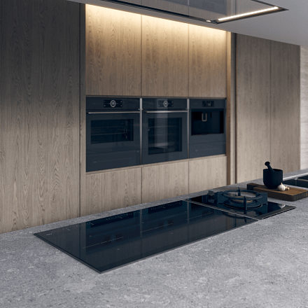 - Материал фасада: чёрное закалённое стекло