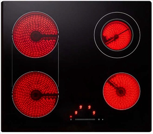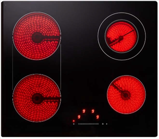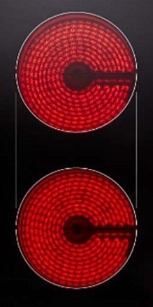 - Двухконтурная конфорка — регулировка размера зоны нагрева под разную посуду