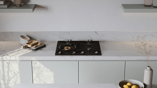 Тройная конфорка с тремя рядами пламени обеспечивает быстрый нагрев и совместима с вок-посудой.
