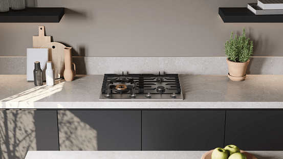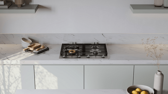 Поверхность из нержавеющей стали отличается простотой в уходе. Конфорки надёжно закрыты решётками, что обеспечивает безопасность при работе с открытым огнём.