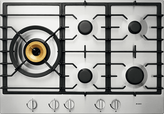Варочная панель Asko HG1776SB выполнена в классическом цвете нержавеющая сталь с фурнитурой одной горелки в бронзовом цвете. Устройство изготовлено из эмалированной стали, устойчивой к выгоранию и царапинам, а съёмные подставки для посуды — из чугуна.