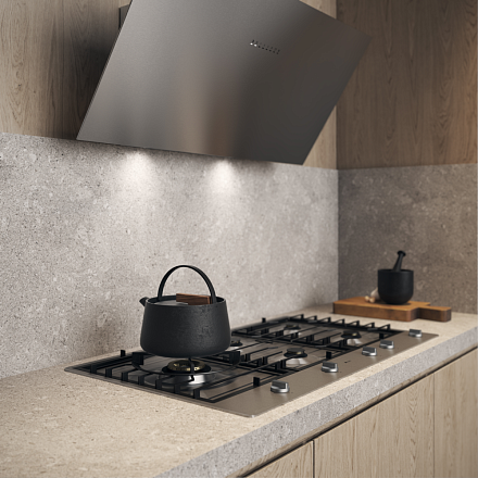 Оборудование оснащено пятью конфорками разной мощности, включая WOK-горелку для интенсивной жарки. Чугунные решётки обеспечивают устойчивость посуды и легко снимаются для очистки.