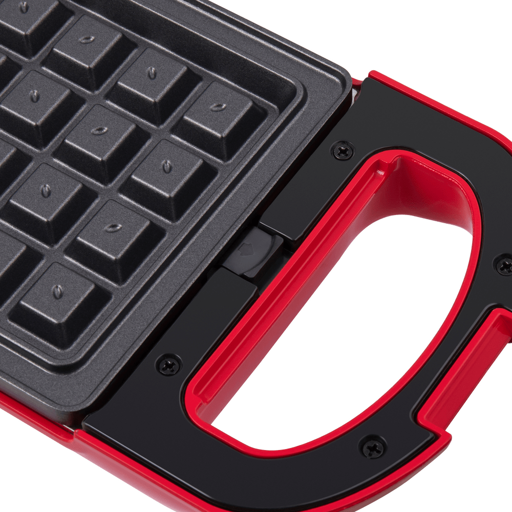 - Яркий дизайн и компактные размеры: Насыщенный алый цвет корпуса делает вафельницу стильным аксессуаром кухни. Компактные габариты позволяют удобно разместить прибор на столешнице или хранить его в шкафу, не занимая лишнего пространства.