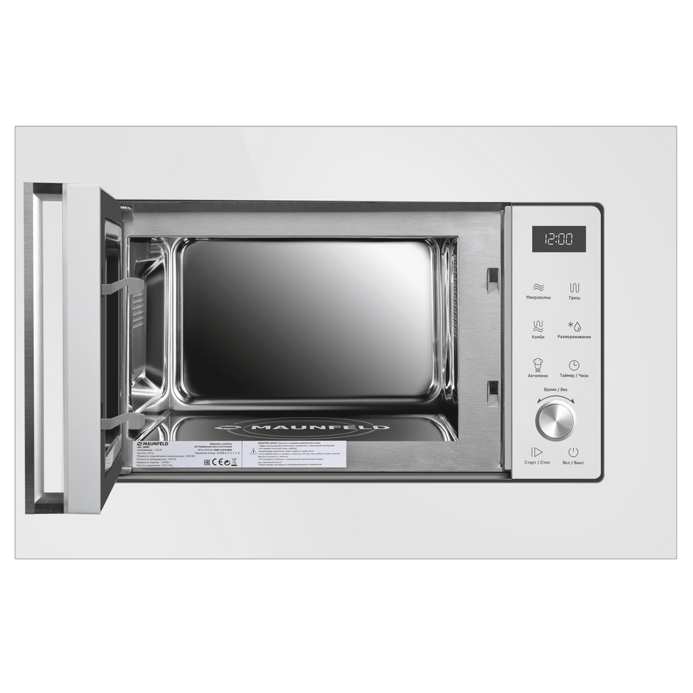 Встраиваемая микроволновая печь Maunfeld JBMO1225FSGW02 — это элегантное и функциональное устройство, выполненное в классическом белом цвете. Благодаря компактным размерам (59.5 см в ширину) модель идеально встраивается в кухонный гарнитур. Управление осуществляется через удобный электронный интерфейс с дисплеем. Прибор предлагает широкие возможности: гриль с ТЭНом мощностью 1200 Вт для получения аппетитной корочки, 5 уровней мощности микроволн (1400 Вт) и 6 автоматических режимов для упрощения готовки. Важной особенностью является наличие функции разморозки и блокировки от детей для безопасного использования.