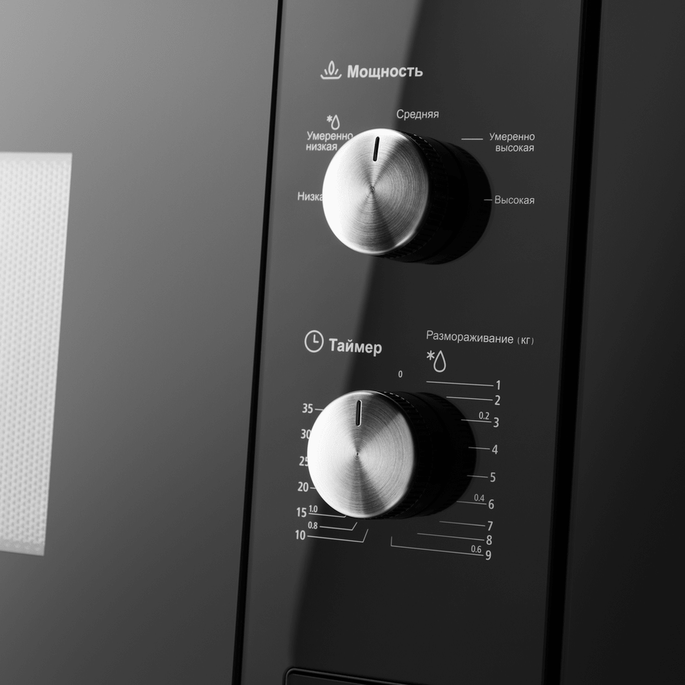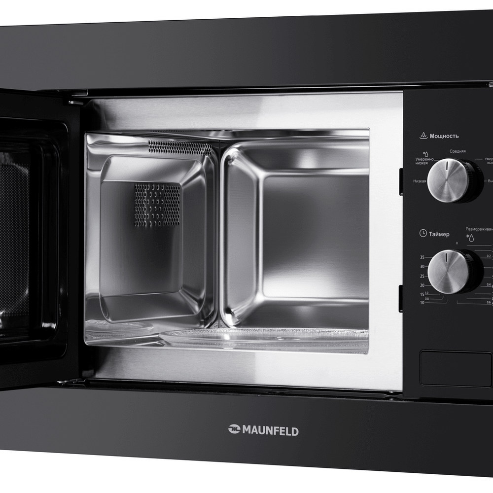 Микроволновая печь Maunfeld MBMO.20.1PGB — это встраиваемая модель в классическом черном цвете, предлагающая надежность и удобство. Ее главная особенность — внутренняя камера объемом 20 литров, выполненная из нержавеющей стали толщиной 0,9 мм. Это обеспечивает долговечность, устойчивость к повреждениям и моющим средствам. Управление интуитивно понятное, с помощью поворотных переключателей и кнопки открывания дверцы. Особого внимания заслуживает функция разморозки по весу, которая автоматически рассчитывает время, экономя ваши усилия.