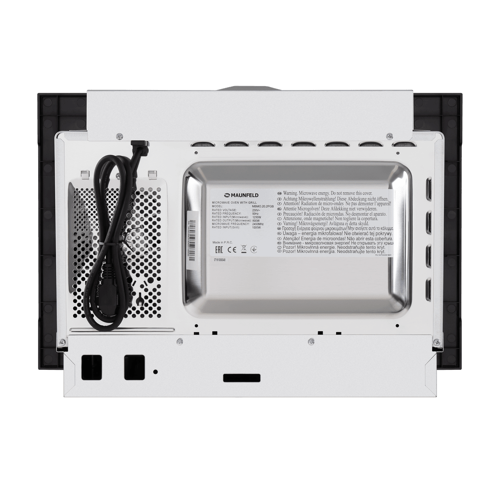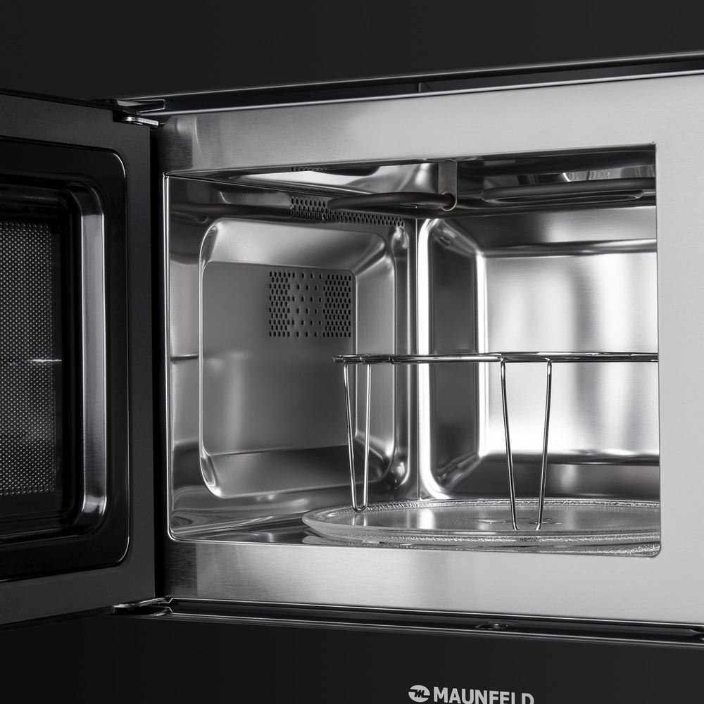 Микроволновая печь Maunfeld MBMO.20.2PGB в элегантном черном цвете сочетает в себе стильный дизайн, комфорт в использовании и современные технологии. Её внутренняя камера полностью выполнена из высококачественной нержавеющей стали AISI 304, что обеспечивает исключительную прочность, устойчивость к царапинам и абразивной чистке. Прибор оснащен практичной навесной дверцей, функциональным грилем и удобной подсветкой камеры для полного контроля над процессом приготовления.