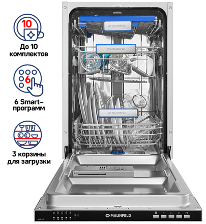 Посудомоечная машина Maunfeld MLP 08B — это образец современной кухонной техники, где каждая деталь продумана для комфорта пользователя. Она объединяет в себе бесшумную работу, энергоэффективность, максимальную безопасность и профессиональное качество мытья, становясь надежным фундаментом для чистоты и уюта в вашем доме.