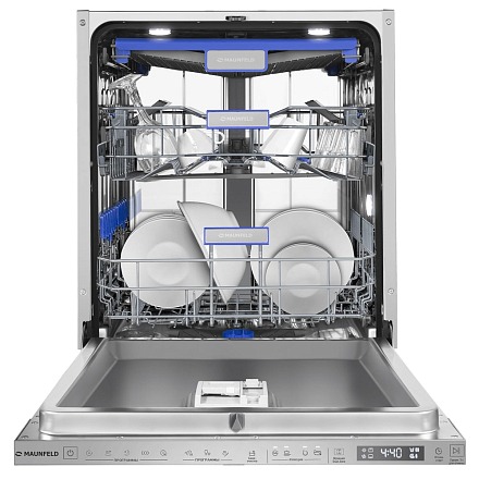 - Удобство использования и интеллектуальный контроль: Сенсорное управление и индикация Smart Beam упрощают взаимодействие. Функция отсрочки старта позволяет планировать мойку на ночь или удобное время. Регулируемая верхняя корзина и выдвижной лоток оптимизируют загрузку.