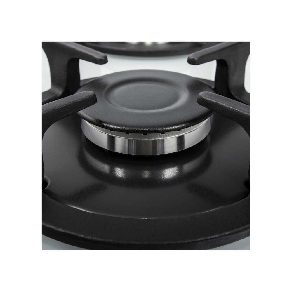 - Безопасность и долговечность в ежедневном использовании: Комбинация газ-контроля, чугунных решеток и конфорок SABAF обеспечивает надежную и безопасную работу, а скошенные края упрощают уход и делают использование более комфортным.