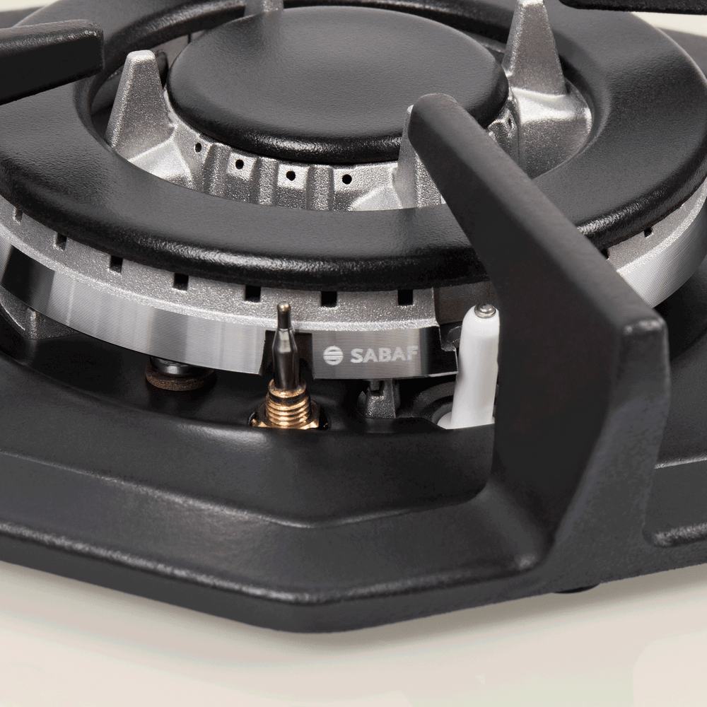 - Высококачественные итальянские горелки SABAF: Использование итальянских горелок SABAF обеспечивает эффективное сжигание газа, равномерное распределение тепла и точное регулирование мощности пламени, что гарантирует отличные результаты приготовления и долгий срок службы панели.