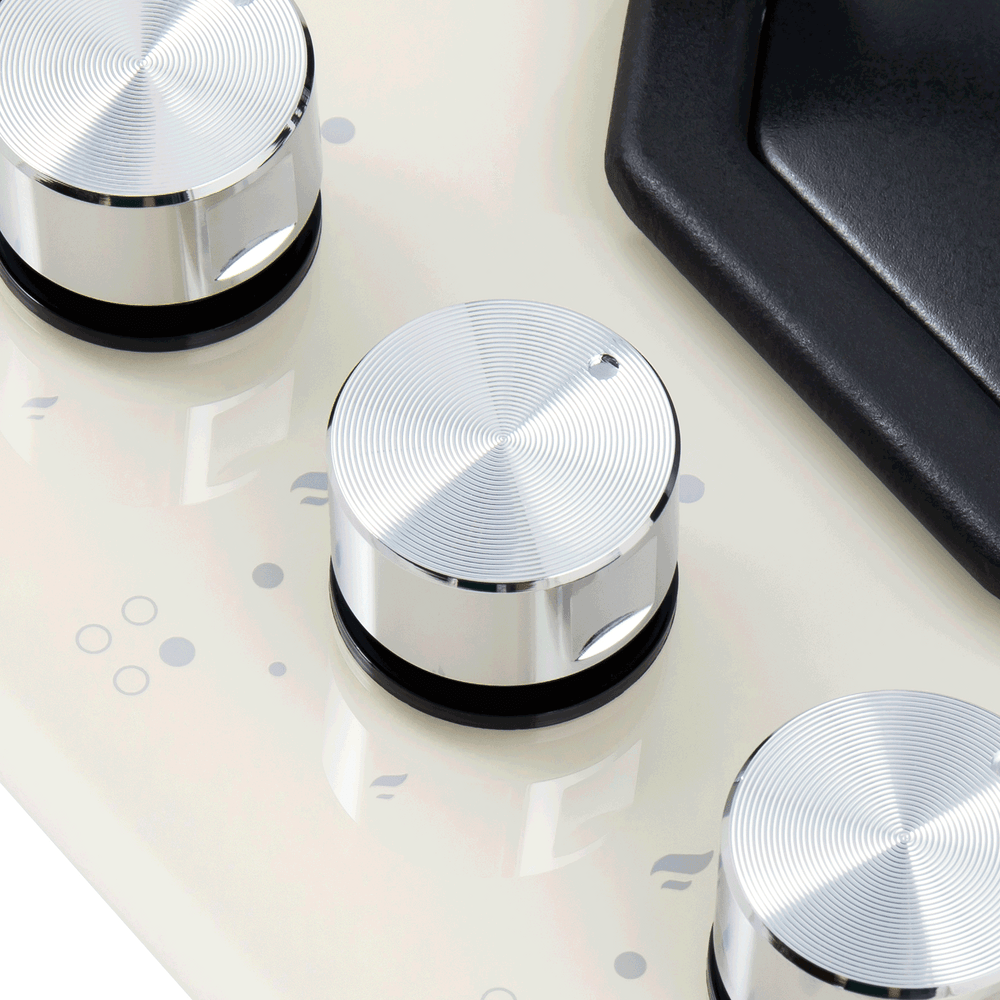 - Автоматическая система безопасности «Газ-контроль»: Технология «Газ-контроль» обеспечивает постоянный мониторинг пламени на всех конфорках. В случае его затухания подача газа мгновенно прекращается, что предотвращает опасность утечки и создает безопасные условия для эксплуатации.