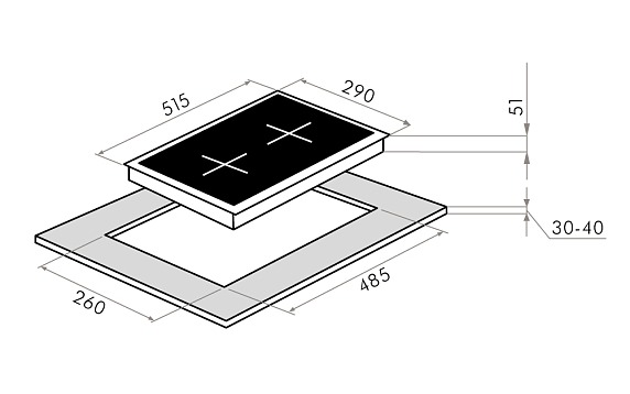 - Гибкость установки на любой поверхности: Наличие четырех регулируемых ножек позволяет легко выровнять панель на неровной столешнице, что обеспечивает её устойчивость и безопасность при использовании.