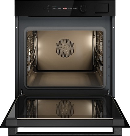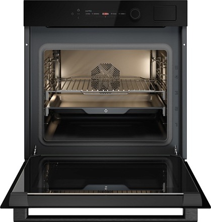 Фронтальная панель из чёрного стекла создаёт лаконичный современный образ, органично дополняющий различные интерьерные решения. Интуитивная система управления объединяет сенсорный интерфейс с поворотными регуляторами, а цветной TFT-дисплей обеспечивает простой доступ ко всем опциям приготовления.
