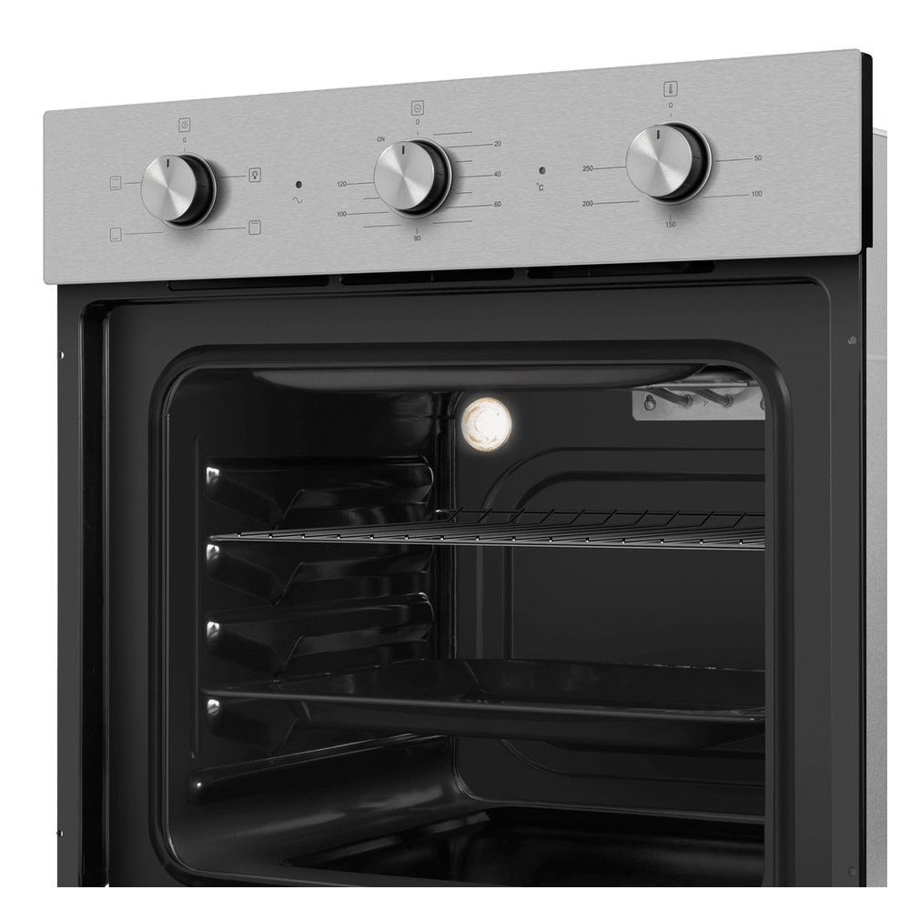 - Безопасность и надежность: Тангенциальная система охлаждения защищает корпус и кухонную мебель от перегрева, а функция автоматического отключения служит дополнительной страховкой. Дверца с двумя стеклами обеспечивает хорошую теплоизоляцию.