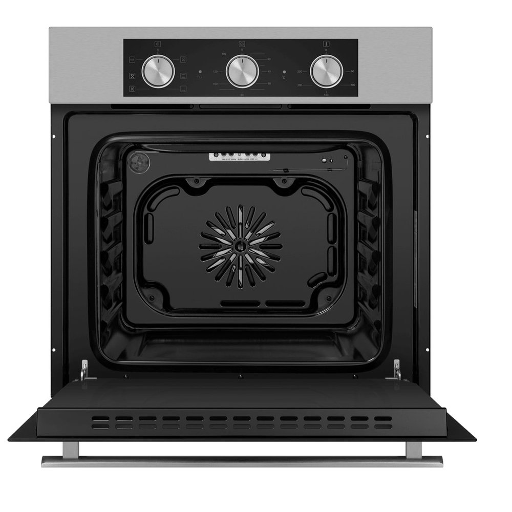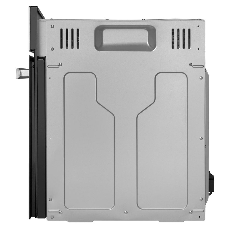 - Тангенциальное охлаждение для долговечности и комфорта: Инновационная система охлаждения с вентилятором обеспечивает интенсивный и равномерный отвод горячего воздуха от задней стенки духовки. Это предотвращает перегрев окружающих шкафов, продлевает срок службы электронных компонентов и поддерживает комфортный микроклимат на кухне.