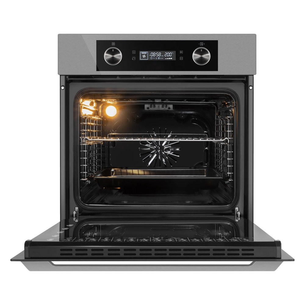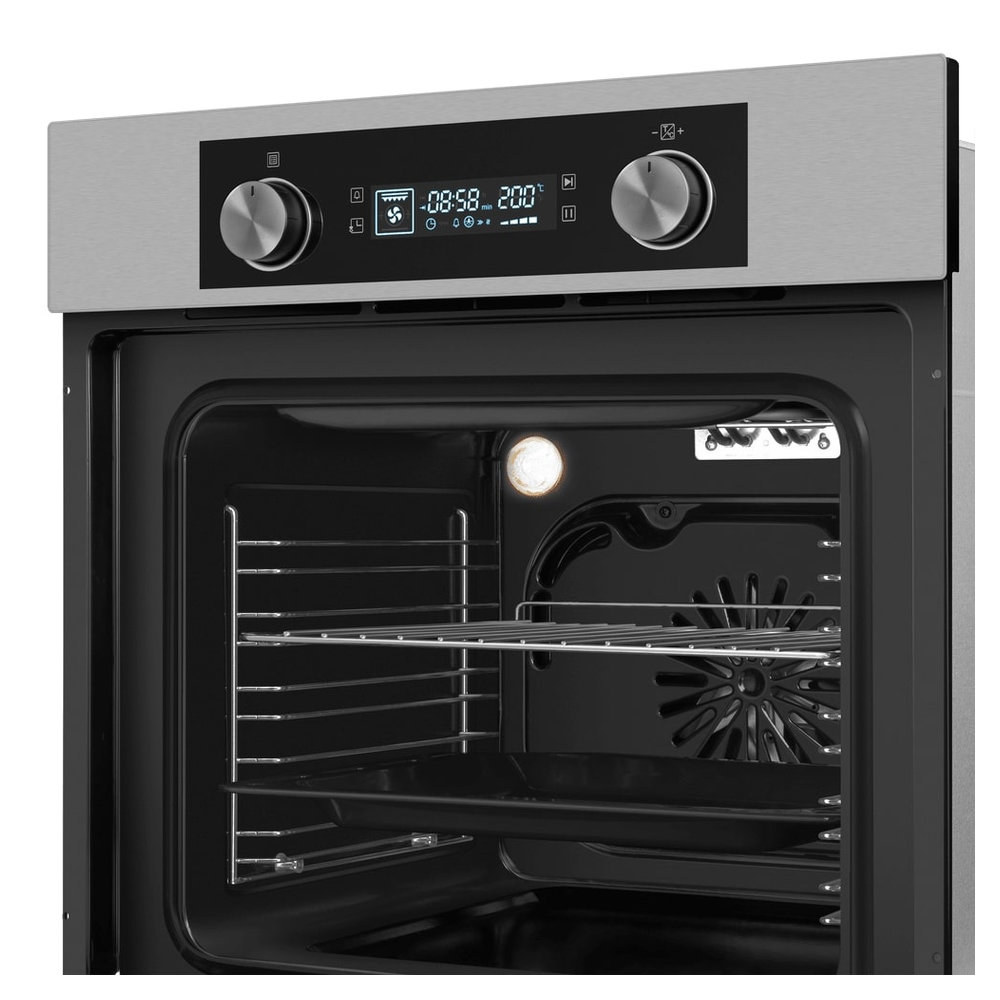 - Стиль, не идущий в ущерб функциональности: Универсальный дизайн под цвет нержавеющей стали гармонично вписывается в большинство интерьеров, а его технические характеристики — большая камера, гриль и электронное управление — обеспечивают все необходимое для комфортного и разнообразного приготовления пищи.
