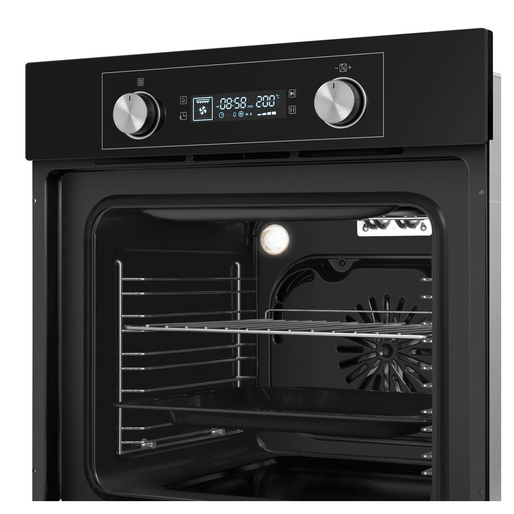 - Объем рабочей камеры в 60 литров: Вместительная камера позволяет с легкостью готовить для всей семьи или принимать гостей. Вы сможете одновременно размещать несколько противней, что экономит время и электроэнергию, делая приготовление праздничного ужина или повседневного обеда максимально эффективным.