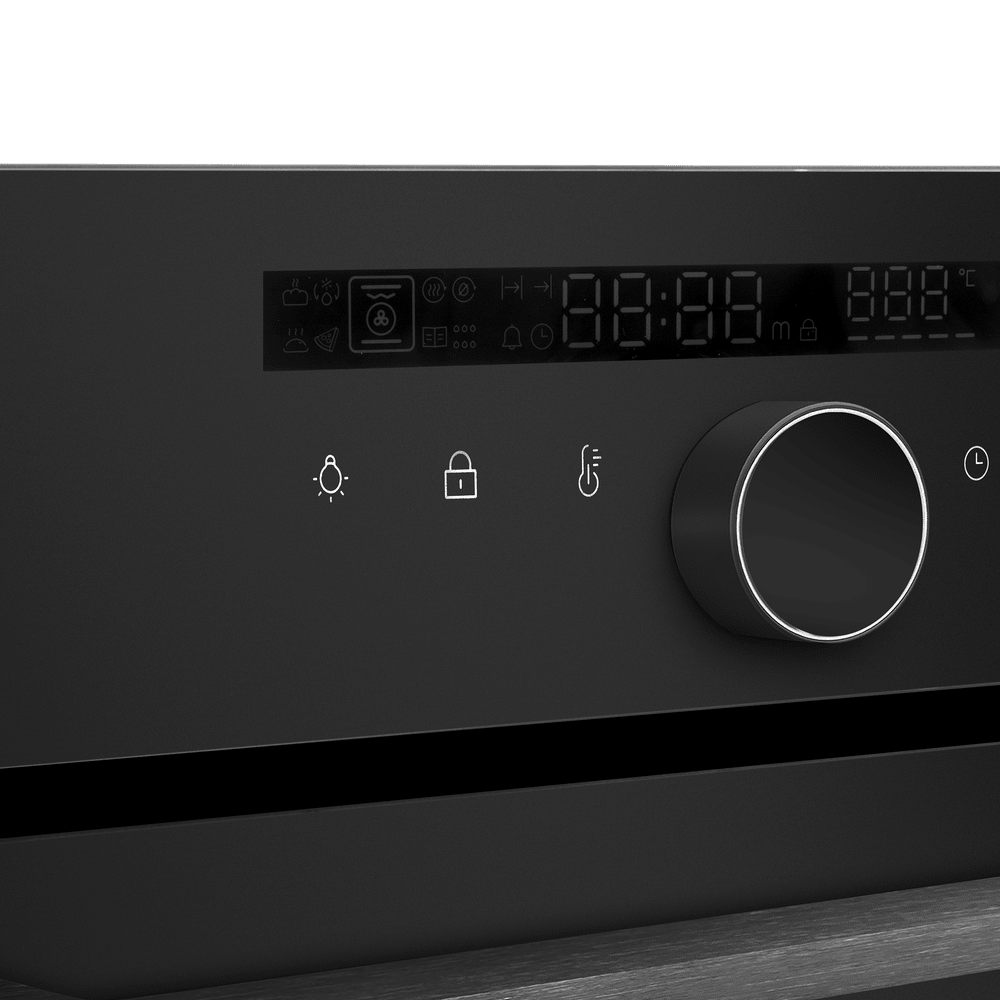 - Интеллектуальное гибридное управление: Удобная комбинация сенсорного программатора для выбора программ и поворотных переключателей для установки температуры/времени обеспечивает интуитивный и точный контроль. Цифровой дисплей с часами и таймером позволяет четко соблюдать рецептуру.