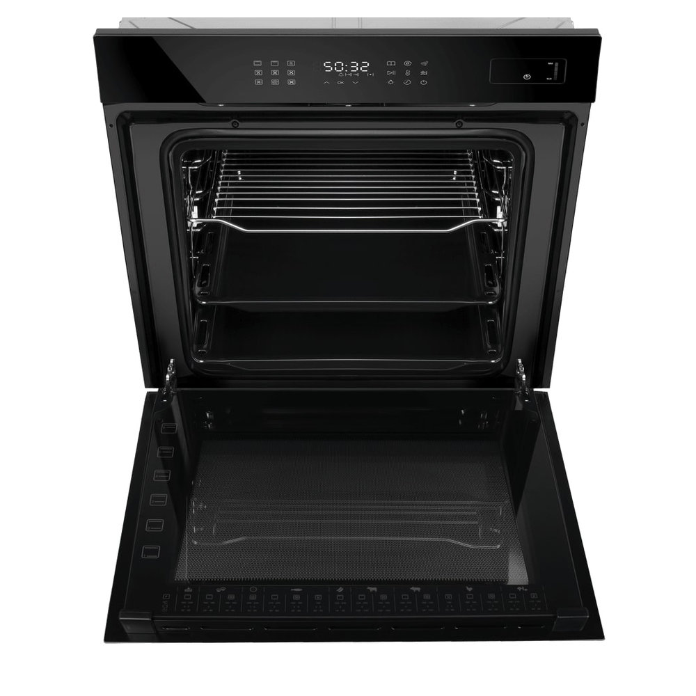 - Современный дизайн и интеллектуальное управление: Строгий дизайн в стиле «Модерн» с сочетанием черного цвета и стали придает кухне современный вид. Сенсорный программатор с функциями отложенного старта, таймера, паузы и звукового сигнала обеспечивает точный и удобный контроль над приготовлением.