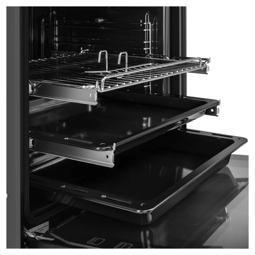 - Телескопические направляющие полного выдвижения (2 уровня): Обеспечивают плавное и безопасное извлечение тяжелых противней.