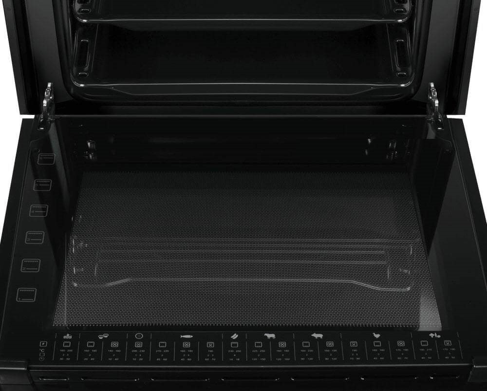 - Компактность и стильный дизайн: Модель специально разработана для экономии пространства, занимая нишу шириной всего 58.5 см. Элегантное сочетание черного цвета и стали делает ее стильным элементом любого интерьера, от классики до хай-тека.