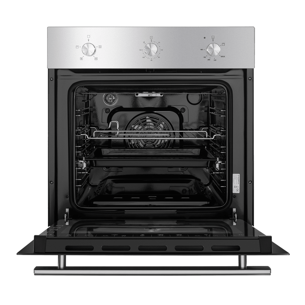 - Дверца с холодным фронтом (3 стекла): Конструкция с тремя слоями жаропрочного стекла эффективно изолирует тепло внутри камеры. Внешняя поверхность дверцы остается безопасно прохладной (холодный фронт), что защищает от ожогов и перегрева соседней мебели.