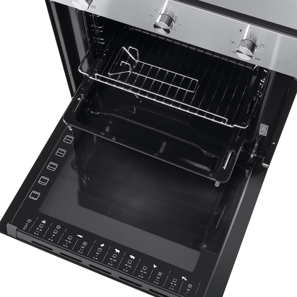 - Идеален для малогабаритных кухонь: Компактные габариты в сочетании с полноценным объемом 60 литров позволяют получить все преимущества большой духовки, не загромождая пространство.