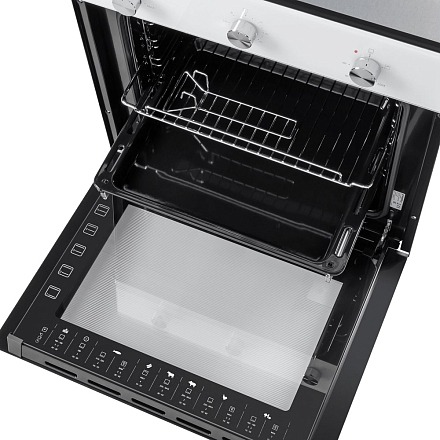 - Безопасный гриль (закрытая дверца): Конструкция позволяет использовать мощный гриль без необходимости держать дверцу приоткрытой, что повышает безопасность (меньше риска ожогов) и энергоэффективность (тепло не уходит).