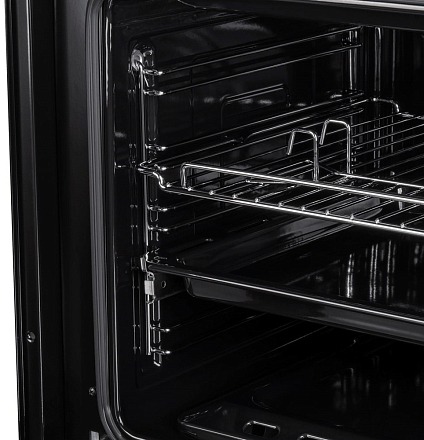 - Телескопические направляющие: Наличие направляющих на одном уровне обеспечивает плавное и безопасное выдвижение противня или решетки, что особенно важно при работе с горячими и тяжелыми блюдами.