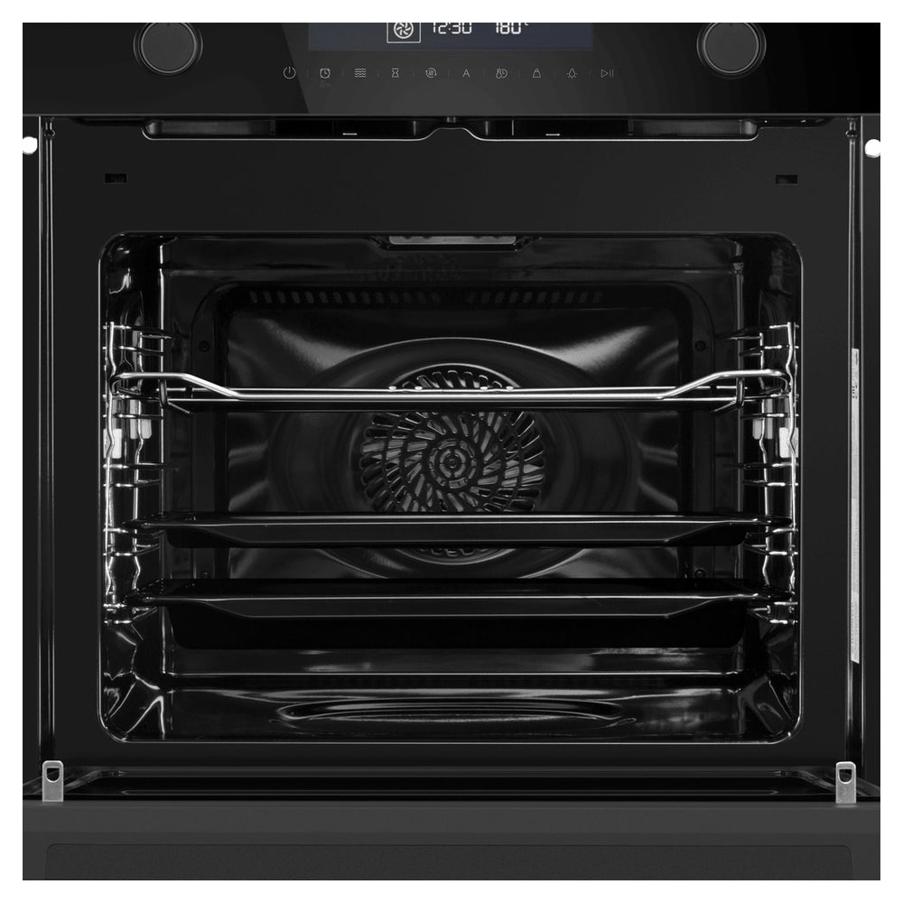 - Безопасность «Холодный фронт»: Технология обеспечивает эффективную теплоизоляцию дверцы духового шкафа. Благодаря этому внешняя поверхность не нагревается до опасных температур, что полностью исключает риск ожогов при случайном касании и защищает фасад кухонной мебели от перегрева.