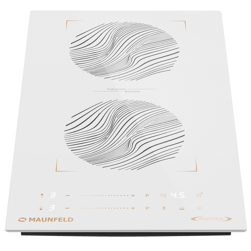 Индукционная варочная панель Maunfeld CVI292S2BWHF Inverter — это современное и стильное решение, которое гармонично сочетает в себе элегантный дизайн и передовые технологии. Панель выполнена из белой стеклокерамики в рамках коллекции «Модерн», что придаёт кухне свежий и чистый вид. Модель оснащена двумя индукционными конфорками с интеллектуальной инверторной технологией управления, обеспечивающей точный и энергоэффективный нагрев. Наличие 9 ступеней мощности, индивидуальных таймеров, функции Booster и комплексной системы безопасности делает эту панель удобным и надёжным помощником для ежедневного приготовления пищи.
