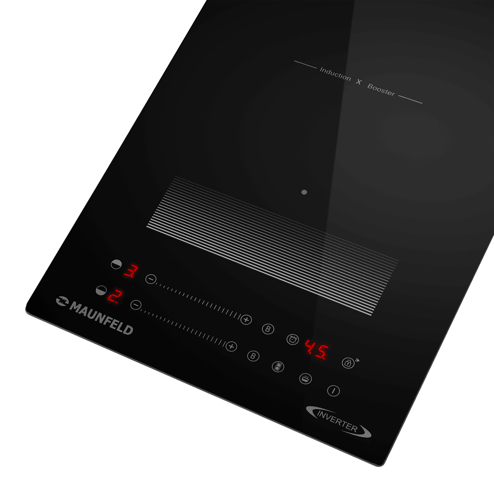 Индукционная варочная панель Maunfeld CVI292S2FBKD Inverter — это стильное и высокотехнологичное решение, объединяющее элегантный дизайн и расширенный функционал. Выполненная в классическом чёрном цвете из стеклокерамики, панель оснащена двумя индукционными конфорками и уникальной расширенной зоной FlexZone для приготовления в посуде нестандартной формы. Ключевой особенностью является инверторная технология непрерывного нагрева, обеспечивающая идеально стабильную температуру. Сенсорное управление слайдером с 9 ступенями мощности, функции Bridge, Booster, размораживания, подогрева и комплекс защитных систем делают эту модель универсальным и безопасным помощником на кухне.