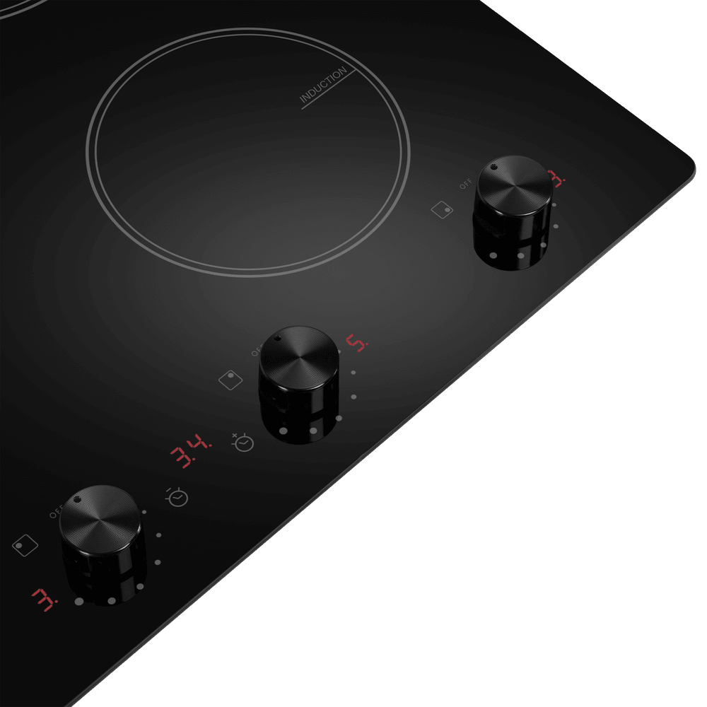 - Классическое управление и современный дизайн: Сочетание чёрной стеклокерамической поверхности и поворотных переключателей создаёт сдержанный и стильный образ. Механическое управление обеспечивает привычный и точный контроль мощности, а также отличается высокой долговечностью.
