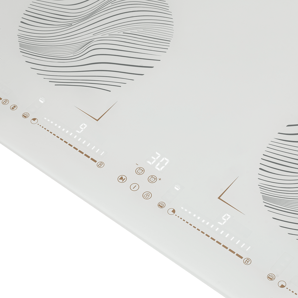 - Современный дизайн и передовые технологии: Белый цвет и гладкая стеклокерамическая поверхность придают панели универсальную эстетику, а инверторная технология обеспечивает плавный, точный и экономичный нагрев, превосходящий по эффективности традиционные индукционные системы.
