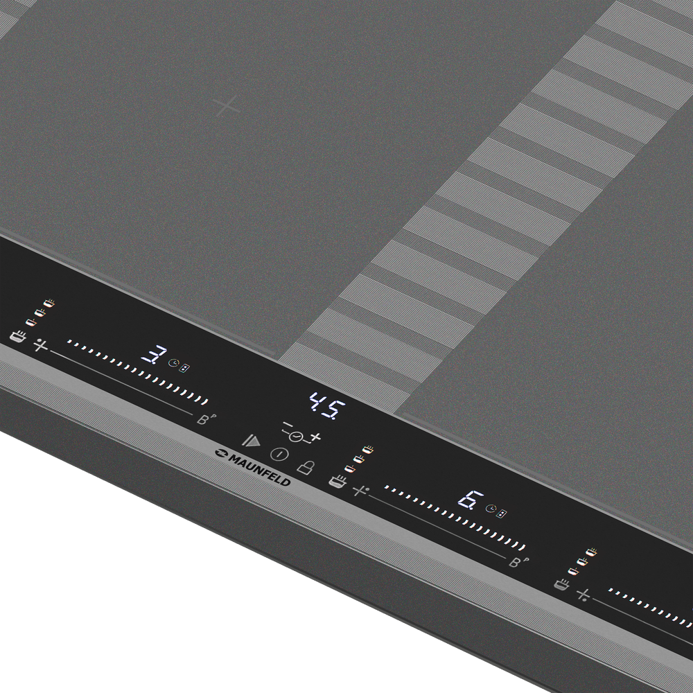 - Таймер и Stop&Go: Встроенный таймер обеспечивает автоматическое отключение по времени. Функция Stop&Go приостанавливает работу всех конфорок для кратковременного перерыва с возможностью мгновенного возобновления с теми же настройками.