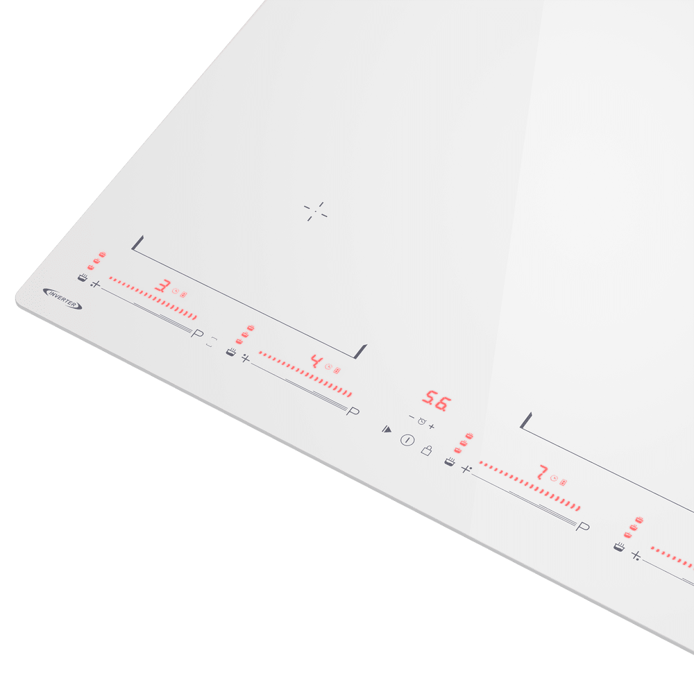 - Современный дизайн и передовые технологии: Лаконичный дизайн в стиле «Модерн» и белая стеклокерамика делают панель стильным акцентом кухни. Она оснащена интеллектуальными технологиями, такими как функция Bridge, позволяющая создавать расширенную зону нагрева, и инверторное управление для эффективной работы, что выводит процесс готовки на новый уровень.