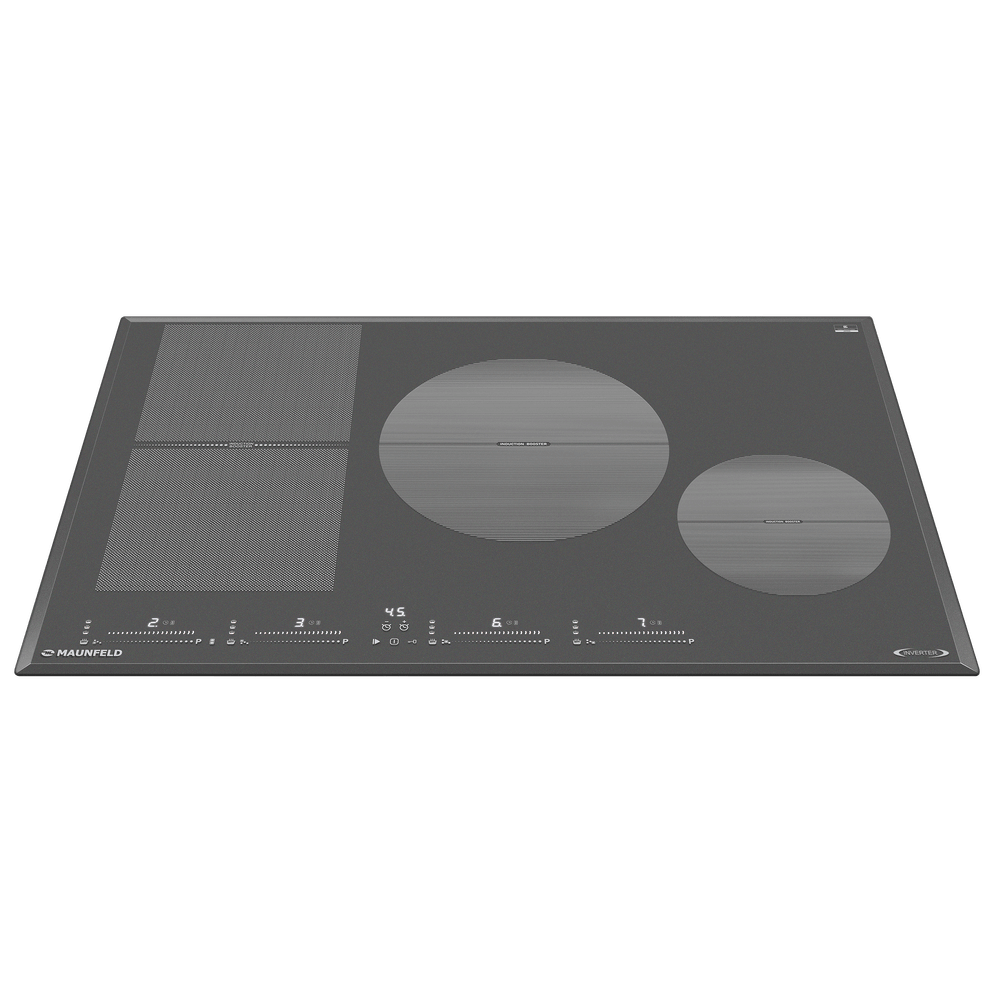 Индукционная варочная панель MAUNFELD CVI804SFDGR Inverter — это современное решение для кухни, сочетающее элегантный дизайн и передовые технологии. Её поверхность изготовлена из долговечной и устойчивой к повреждениям стеклокерамики в стильном графитовом цвете. Компактные размеры (80×52 см) позволяют установить панель даже на небольшой кухне. Управление осуществляется через интуитивный сенсорный интерфейс со слайдером, предлагая 9 ступеней мощности и четкую индикацию нагрева. Панель оснащена четырьмя индукционными конфорками разного диаметра, двумя из которых с функцией Flex Zone, а также интеллектуальными функциями Booster и непрерывного нагрева.