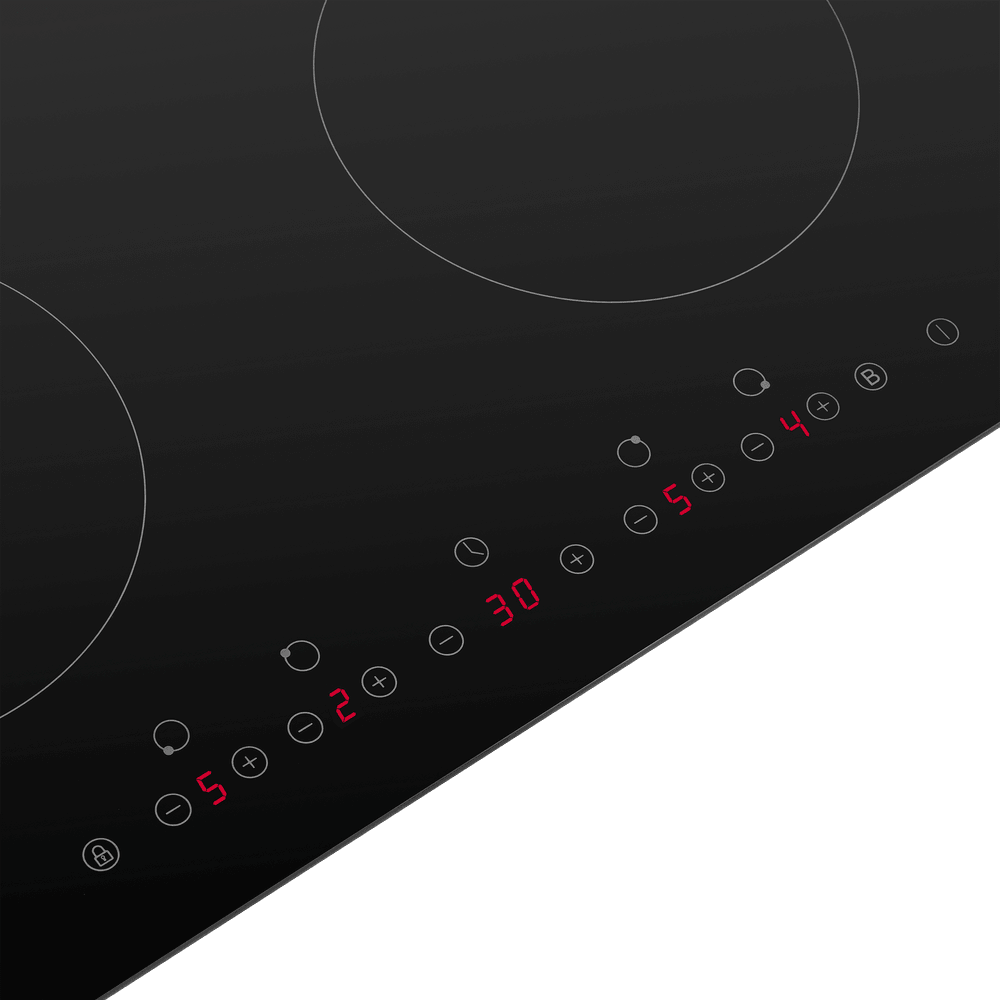 - Блокировка от детей: Функция Child Lock надежно блокирует панель управления, предотвращая случайное изменение настроек или активацию конфорок детьми. Это обеспечивает дополнительную безопасность и спокойствие, позволяя оставлять панель без присмотра на короткое время.