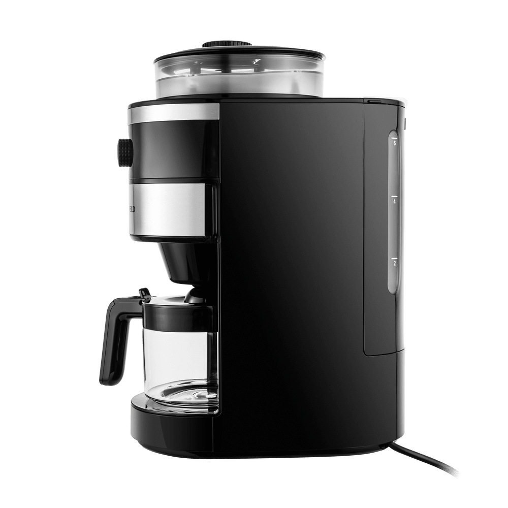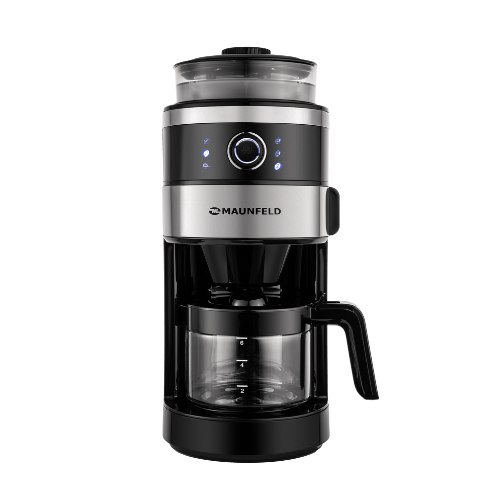Кофемашина MAUNFELD MF-731BK — это компактное и функциональное устройство капельного типа, которое станет идеальным решением для небольшой кухни, офиса или дачи. Модель имеет небольшие размеры, позволяющие ей легко разместиться на любой рабочей поверхности, а идеальное соотношение цены и качества является дополнительным аргументом в пользу покупки. Корпус выполнен из ударопрочного пластика, что гарантирует долговечность и устойчивость к механическим воздействиям. Максимальная мощность 820 Вт обеспечивает быстрое и эффективное приготовление ароматного кофе. Управление осуществляется с помощью поворотных переключателей — простое и надежное электронное управление, проверенное временем. Главной особенностью модели является встроенная кофемолка, которая позволяет использовать в качестве сырья как молотый, так и зерновой кофе, раскрывая максимум вкуса и аромата. Вы можете настроить степень помола и отрегулировать крепость напитка под свои индивидуальные предпочтения. Объем резервуара для воды составляет 830 мл, а кофейника — 750 мл, что позволяет приготовить несколько чашек без частого наполнения. Система «Стоп-капля» предотвращает проливание напитка, если вы решили налить кофе до окончания цикла приготовления. Режим подогрева поддерживает оптимальную температуру, чтобы вы могли наслаждаться горячим кофе не торопясь. Яркий световой индикатор наглядно оповещает о включении прибора. Гарантия от производителя составляет 12 месяцев.
