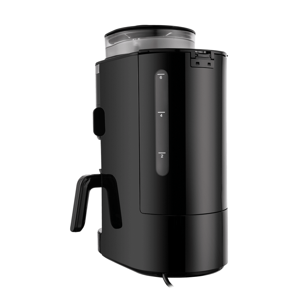 - Компактные размеры и вместительные резервуары: Небольшие габариты позволяют разместить кофемашину даже на ограниченном пространстве, при этом резервуар для воды на 830 мл и кофейник на 750 мл обеспечивают достаточный объем для нескольких порций.