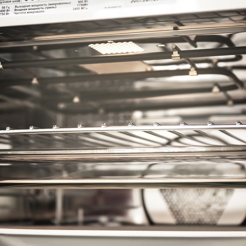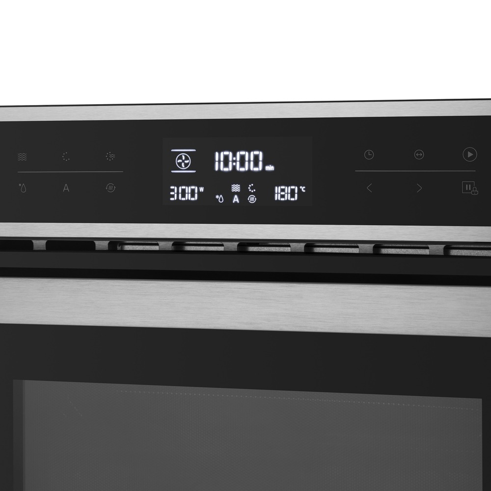 - Отличный обзор и эргономика: Панорамное внутреннее стекло дверцы обеспечивает широкий обзор камеры, позволяя визуально контролировать процесс приготовления без потери тепла от открывания дверцы.