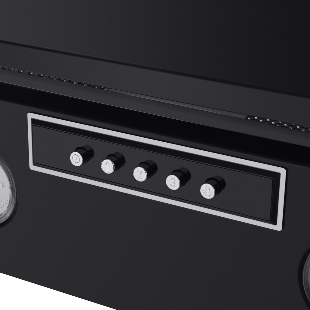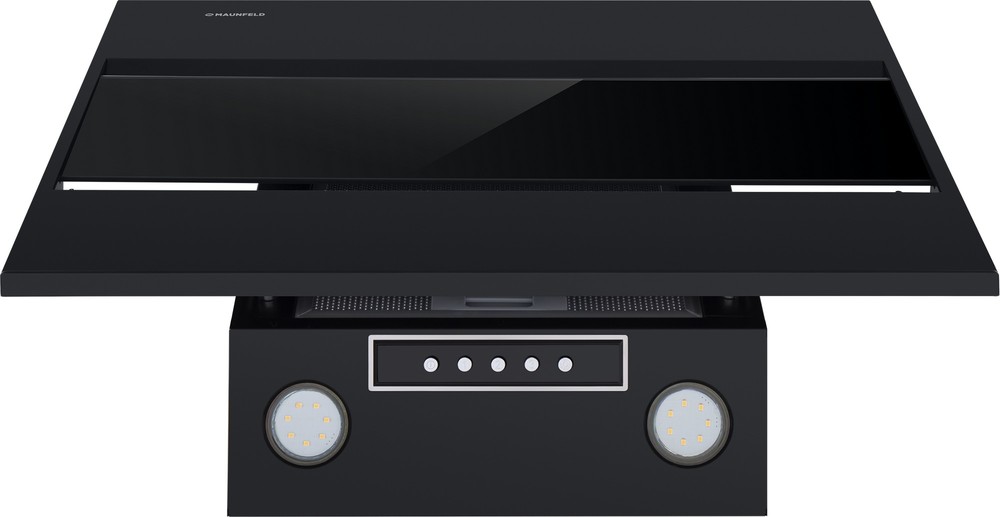 - Стильная и функциональная откидная панель: Черная металлическая панель с вставкой из закаленного стекла выполняет роль декоративного щита, скрывающего фильтр. Она легко откидывается, предоставляя простой доступ для его извлечения и чистки.