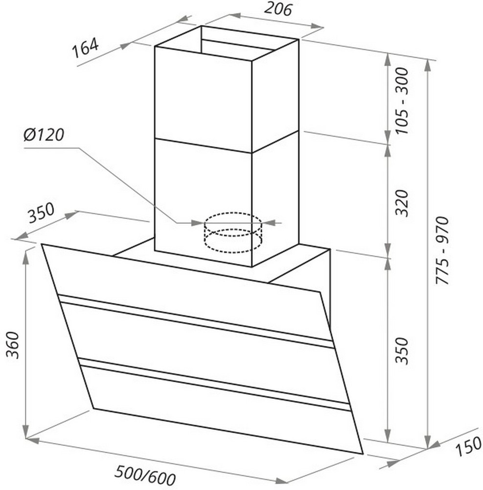 - Тип: Наклонная пристенная вытяжка