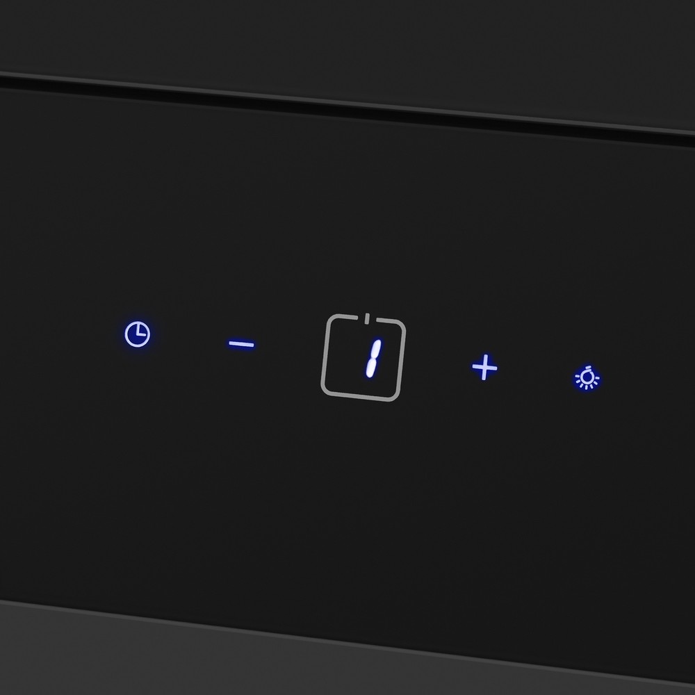 - Современный дизайн и интеллектуальное управление: Элегантный черный корпус со стеклянным экраном придает вытяжке ультрасовременный вид. Сенсорная панель с цифровым дисплеем и таймером обеспечивает интуитивный контроль над всеми функциями, делая использование простым и технологичным.