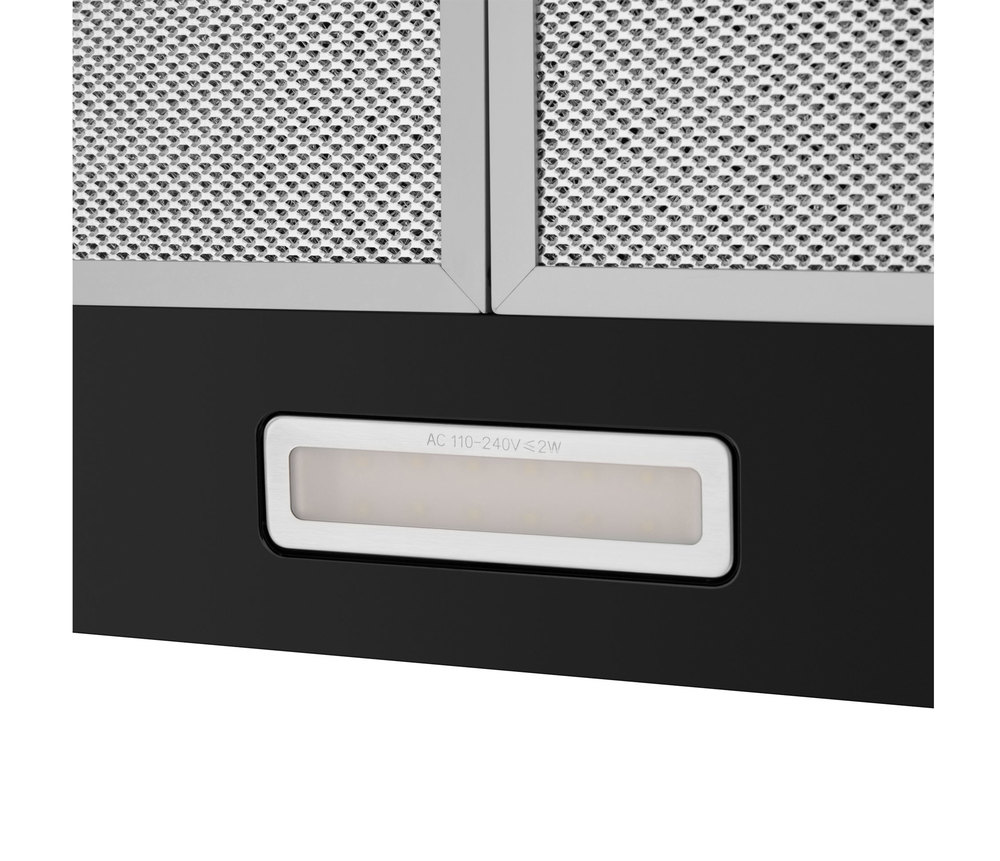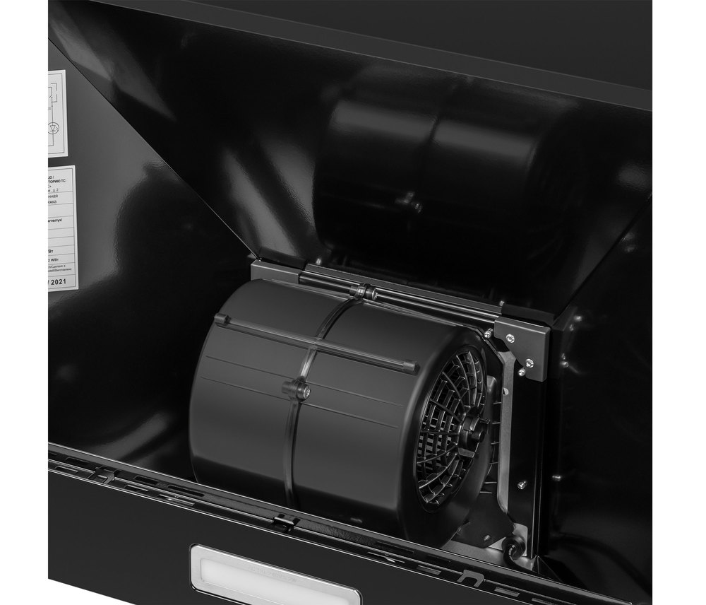 - Стильный дизайн и компактные размеры: Лаконичный черный корпус прямоугольной формы гармонично вписывается в современный интерьер, а компактные габариты позволяют установить вытяжку даже на кухне с ограниченным пространством.