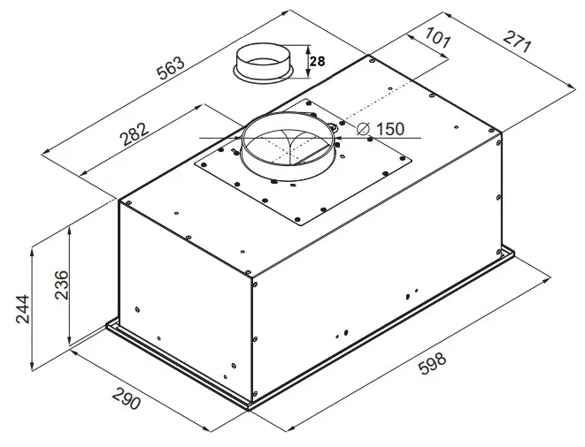 - Периметральная система всасывания: Технология периметрального всасывания обеспечивает эффективный забор загрязненного воздуха, пара и частиц жира по всему контуру над плитой, не оставляя «слепых» зон.