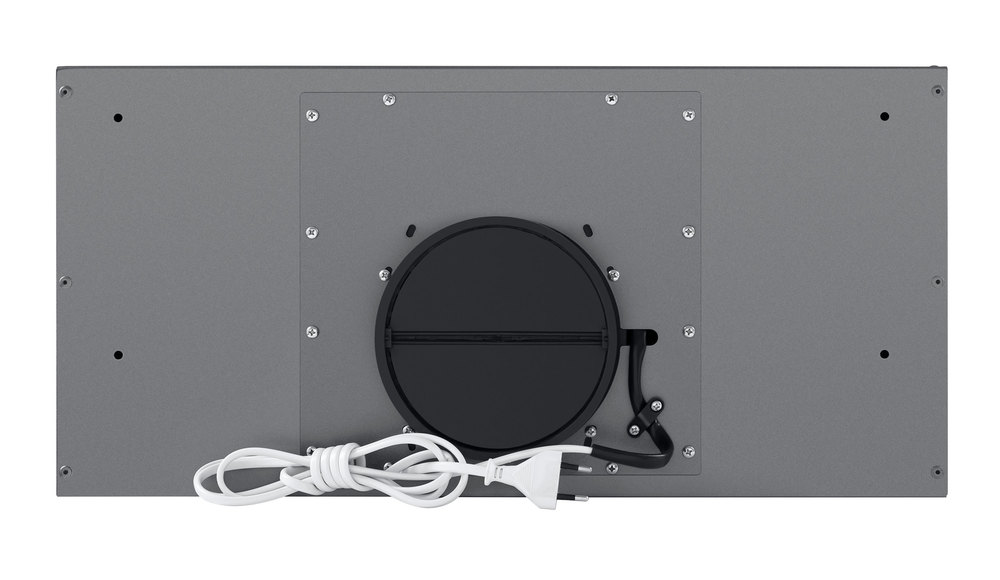 - Лаконичный встраиваемый дизайн: Полностью скрытый монтаж в кухонный шкаф делает вытяжку практически незаметной, оставляя на виду только функциональную черную панель, что идеально для интерьеров в стиле минимализм.