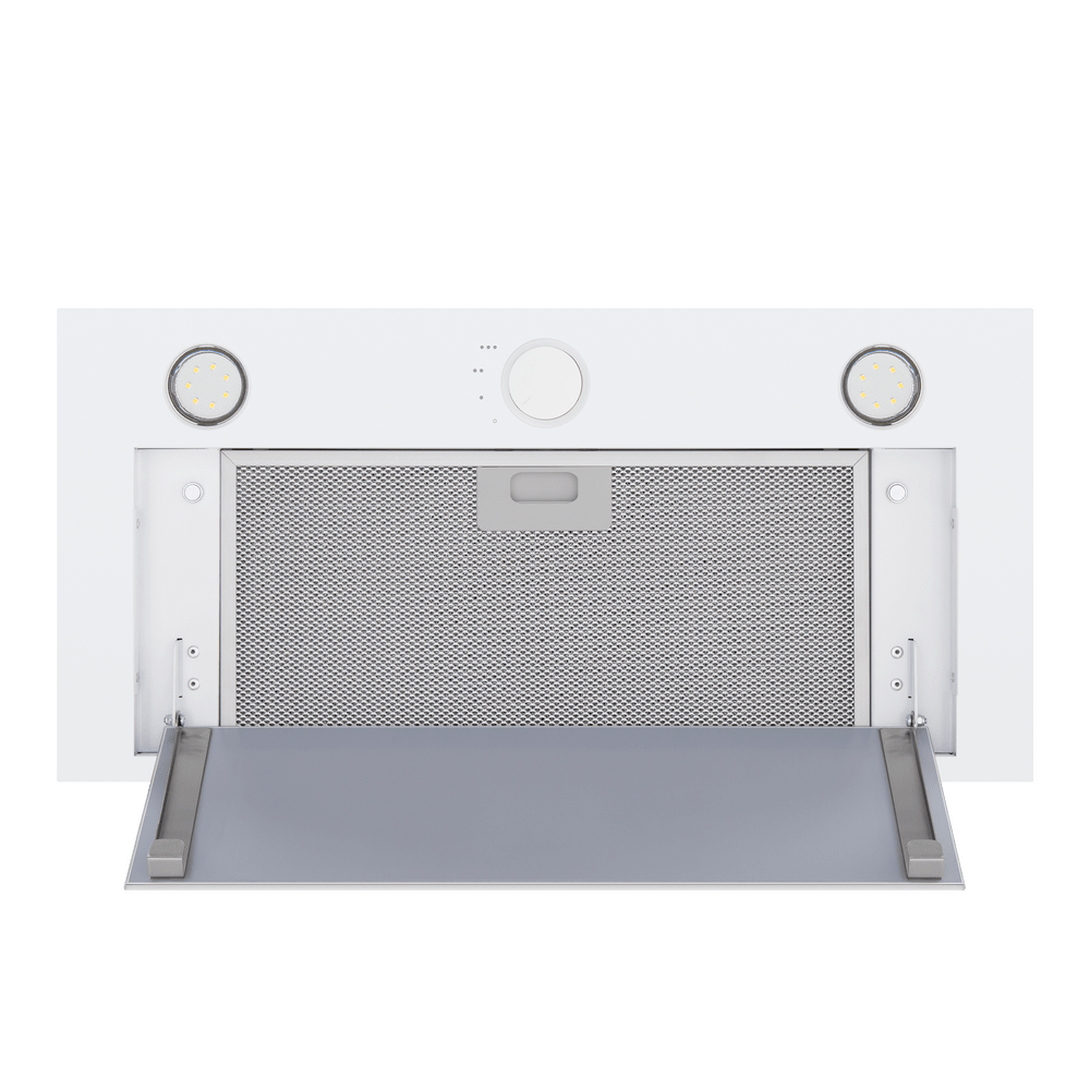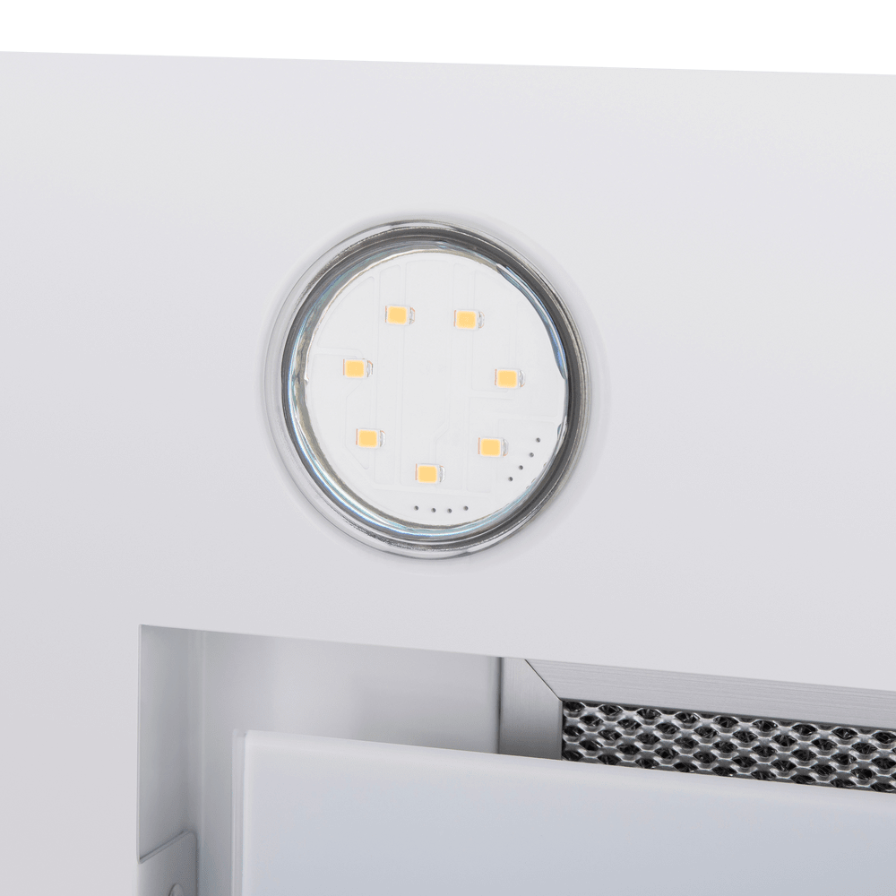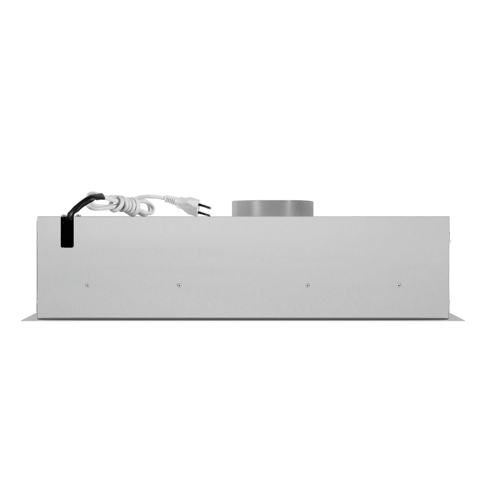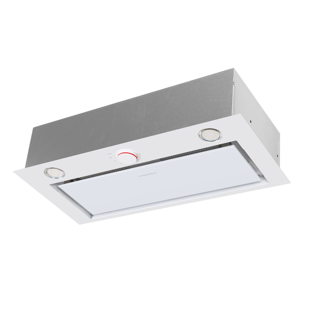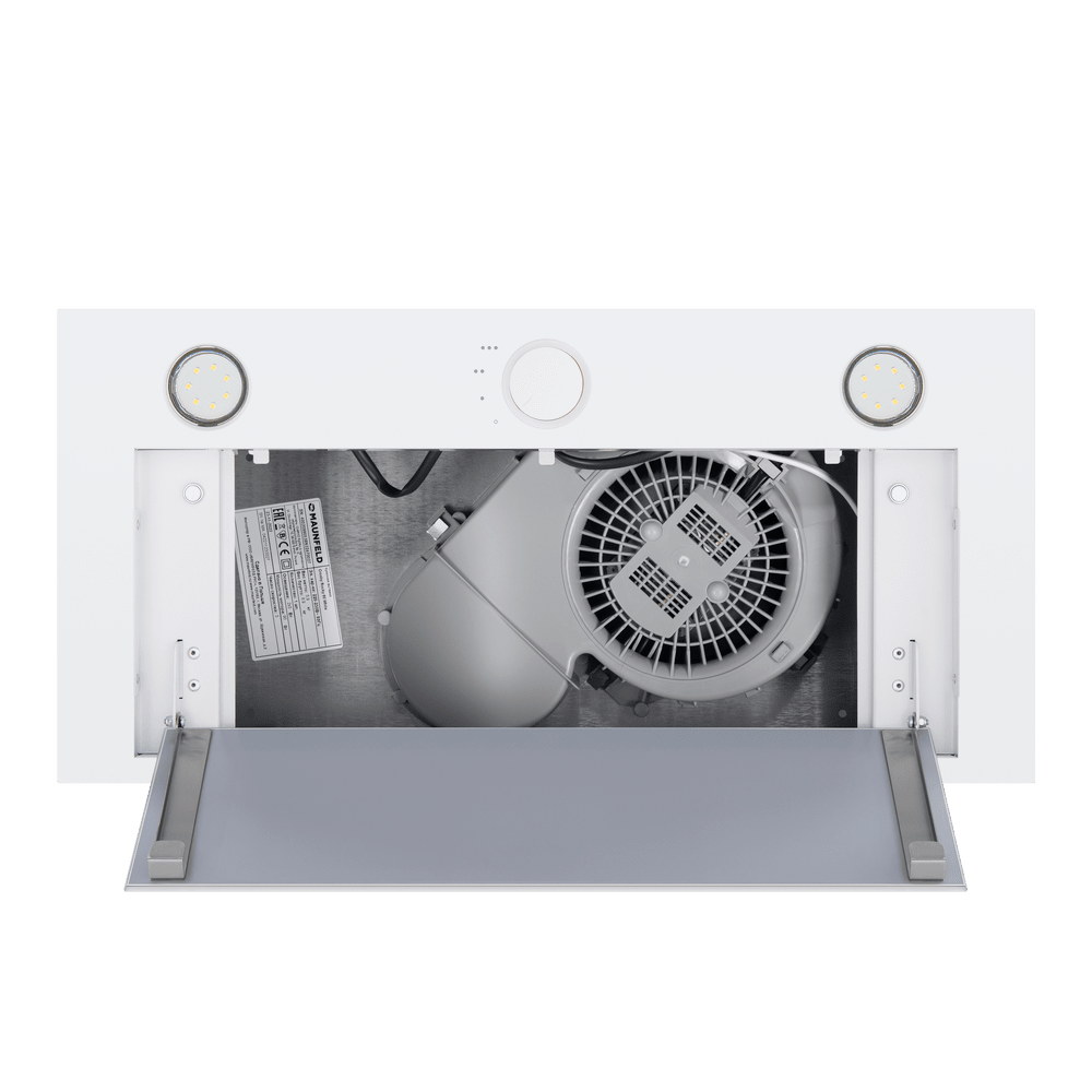 - Встраиваемая конструкция: Модель полностью интегрируется в кухонный шкаф, что позволяет сохранить целостность и стиль интерьера, эффективно используя пространство над варочной панелью.