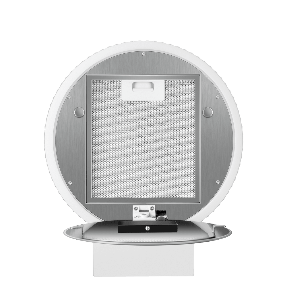 - Минималистичный дизайн с максимальной мощностью: Эта вытяжка опровергает стереотип о том, что мощная техника должна быть громоздкой. Ее лаконичный цилиндрический дизайн скрывает профессиональную производительность, идеально подходящую для современных интерьеров.