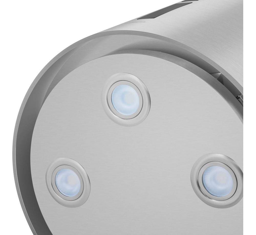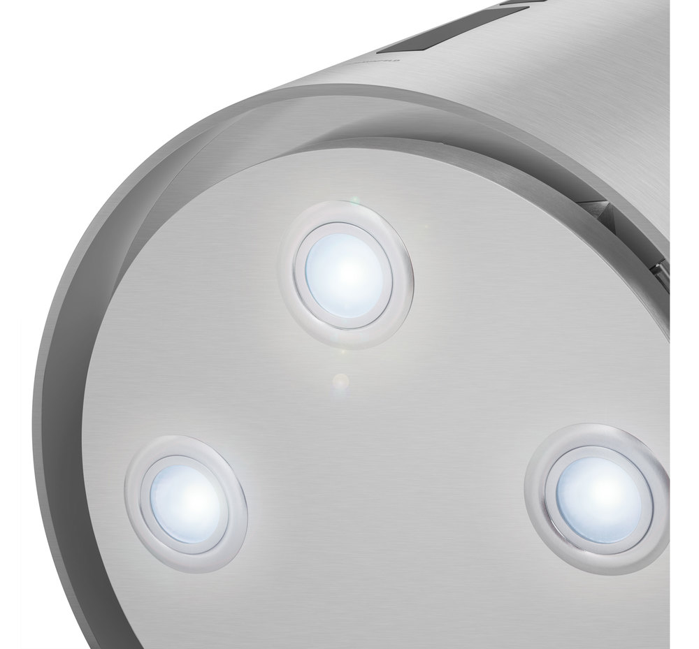 - Современный дизайн и высокие технологии: Цилиндрический корпус из нержавеющей стали в стиле «Модерн» обладает лаконичной и универсальной эстетикой. Модель оснащена передовыми технологиями, включая периметрическую систему всасывания (P.A.S.) и интеллектуальное сенсорное управление, что делает ее не только стильным, но и высокотехнологичным элементом кухни.